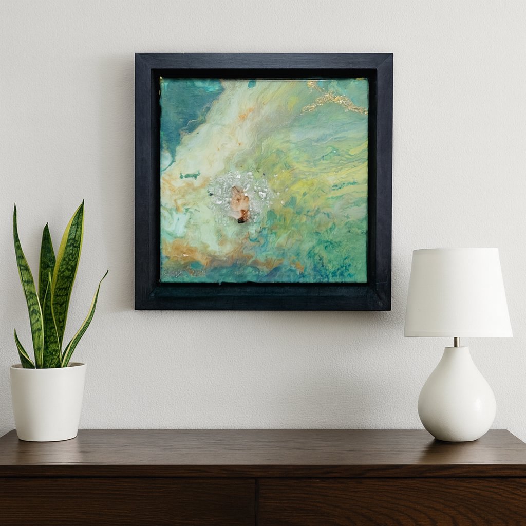 Real citrine crystal is embedded in this original painting. Part of an almost sold out Good Energy Art Series