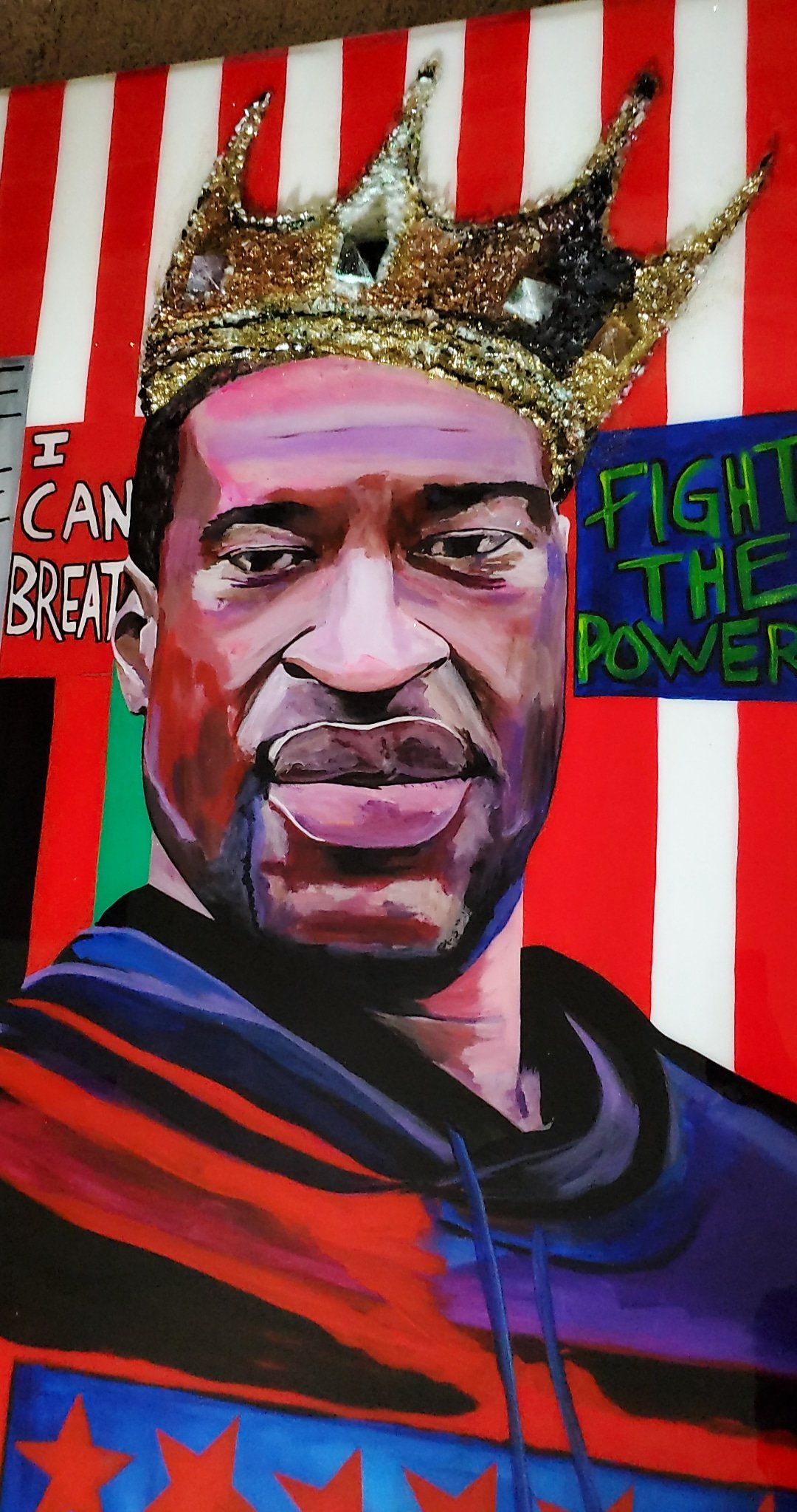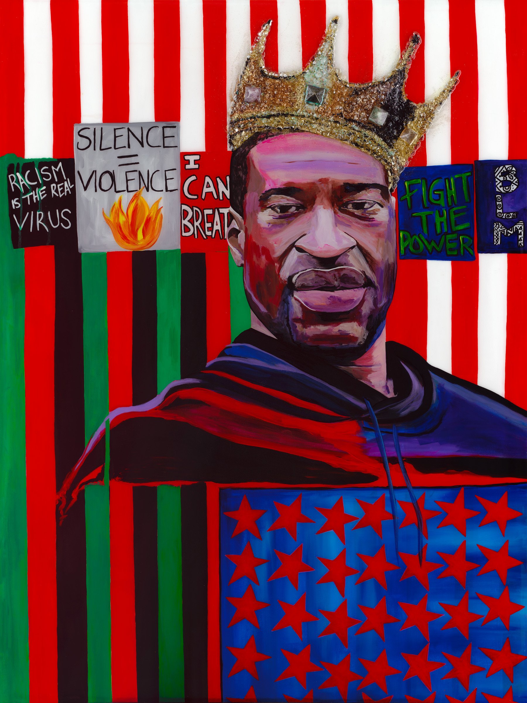 36"x48" Original art with real crystals embedded into crown design complete with a resin finish.